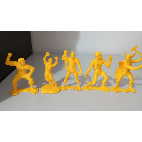 pack com sete bonecos sendo eles CAPITÃO AMÉRICA, THOR, HOMEM ARANHA, DEMOLIDOR, HULK, HOMEM DE FERRO e NAMOR uma raridade produzida pela ATMA em 1967 no original cada um tinha cerca de 15cm de altura na escala.