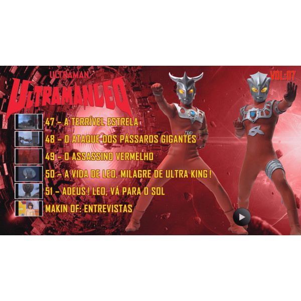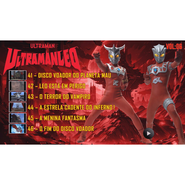 Completo 06 blurays acompanhe esta que foi a ultima série produzida pela tsuburaya em 1974, sendo considerada a mais violenta de todas com um tom dramatico forte, acompanhe as lutas de LEO contra os kaijus BLACK GIRAS, RED GIRAS, LON, ANTARES e as lutras contra o ALIEN BARBARUE, veja tb a reunião dos ULTRA KYODAI
